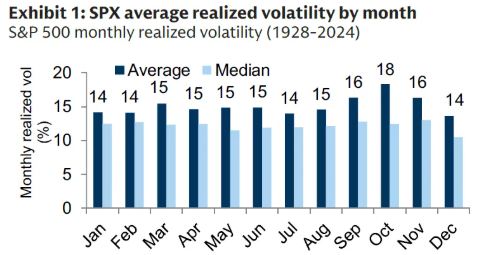 高盛衍生品研究部门主管John Marshall表示:“10 月的市场波动绝非偶然现象。对于许多需要在年底评估业绩表现的投资者和企业而言,这是一个关键时期。这些压力会促使交易量和波动性增加,因为投资者会关注公司的盈利报告、分析师会议以及管理层对来年业绩的预测。”